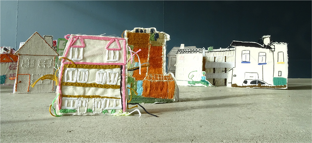In a spontaneous moment, Paula Briggs, co-director of AccessArt, invited followers of AccessArt to join in the creation of an artwork ‘celebrating the diversity’ of the AccessArt community. Paula invited participants to draw a simple image of their own home and to ‘sew the image on a 20cm square of fabric’ and then send it back to AccessArt. The individual houses were then to be ‘brought together by a textile artist’ in ‘one amazing artwork’. And that was how the AccessArt Village began.
