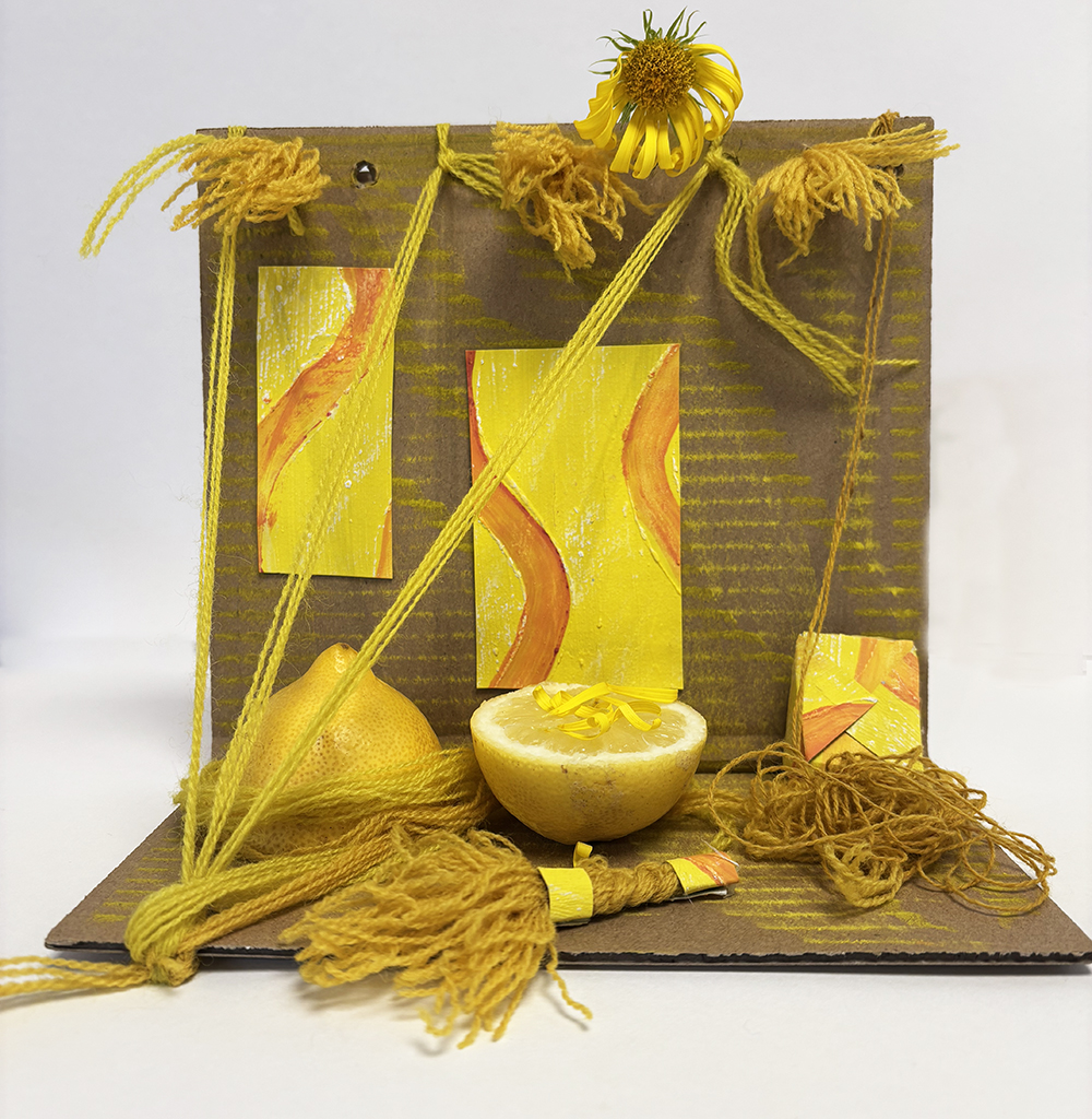I invited the participants to explore the materials in front of them, to absorb their yellow materiality. I reminded them they were able to be active – to walk about with curiosity. To go and look and find, not just to accept the materials immediately in front of them. This investigatory curiosity is key to creativity.