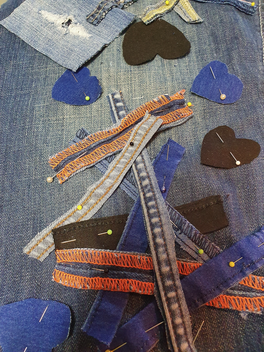 Tomasz said his mum had jeans she wanted to throw away and we agreed that jeans were very resilient. They could take the harshness of life, get worn out, patched up, become a little frayed around the edges and still survive. A bit like life really! And so our summer holiday project was born.